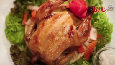 مقادير الوصفة طريقة التحضير 1 باستعمال مقص المطبخ إقطعي كل دجاجة إلى نصفين. 2 في طبق فرن كبير الحجم ضعي…