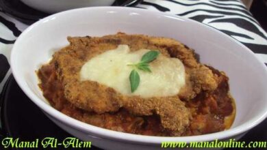 مقادير الوصفة طريقة التحضير 1 ضعي قطع الدجاج بين قطعتين من ورق الزبدة أو النايلون. إطرقي الدجاج بمطرقة اللحم لتصبح…