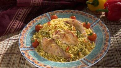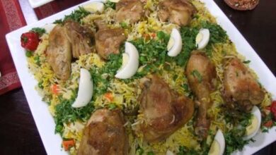 مقادير الوصفة طريقة التحضير 1 إغسلي الأرز عدة مرات ثم انقعيه لمدة ٣٠ دقيقة. 2 في طبق عميق صغير ضعي…