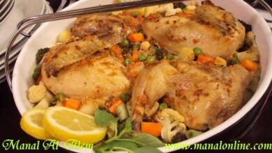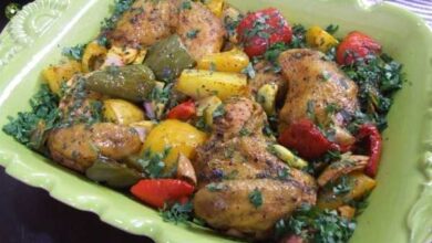 مقادير الوصفة طريقة التحضير 1 أنثري قليل من الملح والفلفل على قطع الدجاج. 2 في قدر سميك القاعدة ضعي الزيت…