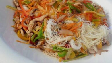 فيليه الدجاج مع الخضروات والنودلز