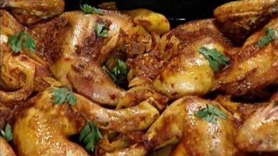 مقادير الوصفة طريقة التحضير 1 سخني الفرن إلى درجة حرارة ١٨٠م. أحضري طبق فرن واسع. 2 إقطعي الدجاج إلى نصفين…