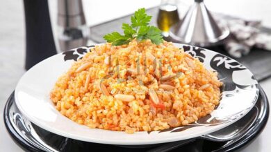 مقادير الوصفة طريقة التحضير 1في قدر متوسط الحجم سخني الزيت والزبدة، أضيفي البصل، الثوم، قلبي لدقيقة ثم اضيفي الأرز.2أضيفي البهارات…