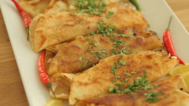 مقادير الوصفة طريقة التحضير 1 في طبق ضعي البابريكا، البهارات، الملح، الفلفل والشطة، اضيفي المايونيز، عصير الليمون ونصف كمية الزيت،…