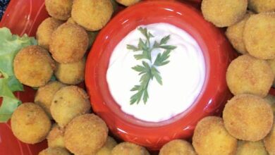 مقادير الوصفة طريقة التحضير 1 في مقلاة واسعة سخّني كمية وفيرة من الزيت على نار متوسطة، إقلي مكعبات الخبز لتصبح…