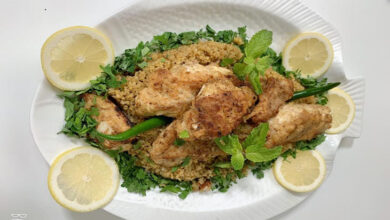 مقادير الوصفة طريقة التحضير 1في مقلاة واسعة سخني الزيت.2اضيفي الدجاج، انثري بعض الملح والفلفل.3اتركي الدجاج لبضع دقائق ليصبح ذهبي اللون…