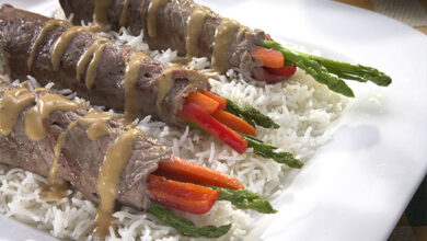 مقادير الوصفة طريقة التحضير 1باستعمال سكين حادة إقطعي كل قطعة فيليه بالعرض إلى شريحتين رقيقتين.2في طبق ضعي الفيليه ثم وزعي…