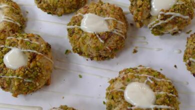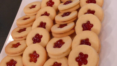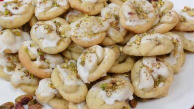 مقادير الوصفة طريقة التحضير 1 سخني الفرن لدرجة حرارة 180مْ. أحضري صواني قصيرة الحافة. بطني الصواني بورق الزبدة 2 باستعمال…