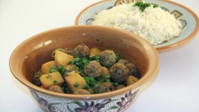 مقادير الوصفة طريقة التحضير 1 باستعمال سكين حادة قطعي اللحم إلى مكعبات بمقاس ١ بوصة تقريبا. 2 في قدر متوسط…